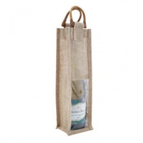 This Classic eco friendly jute bag, features a window at the front that shows off the wine bottle label.