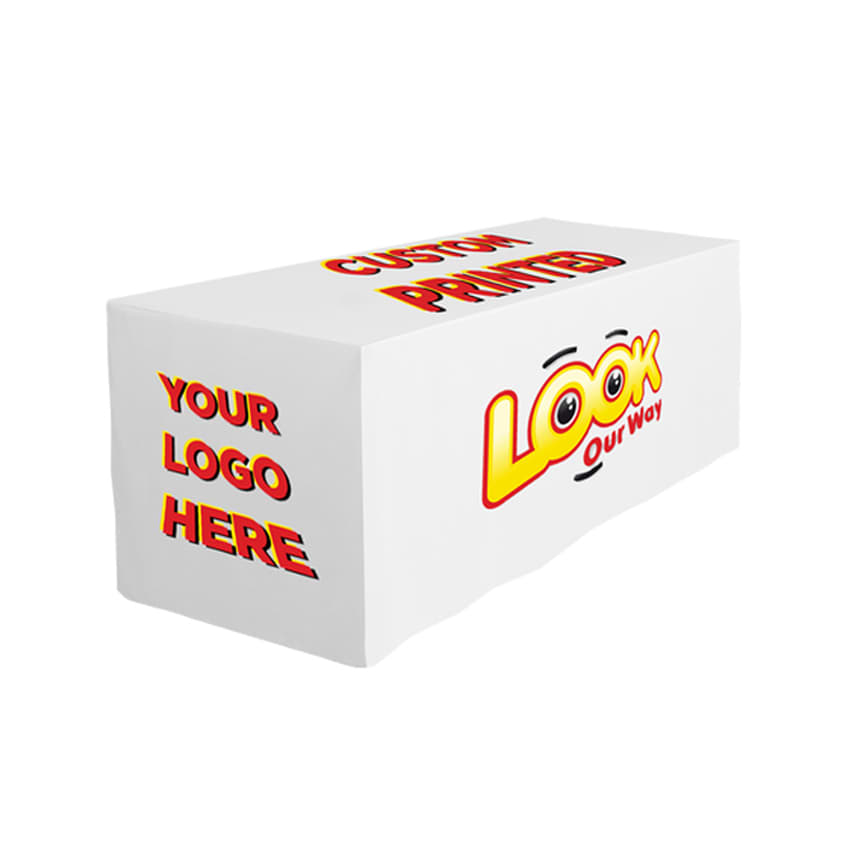 Create a custom tradeshow display with our promotional 4-Sided Fitted Table Cloth! Made of machine-washable polyester fabric, that can be reused over and over again. Using our 4-sided table cloths will make your customers see your brand from all four sides. Complete with full surface, vibrant sublimation branding, to help you stand out with your custom design. It's ideal for promo events and tradeshows to add an extra visual element to your display.?