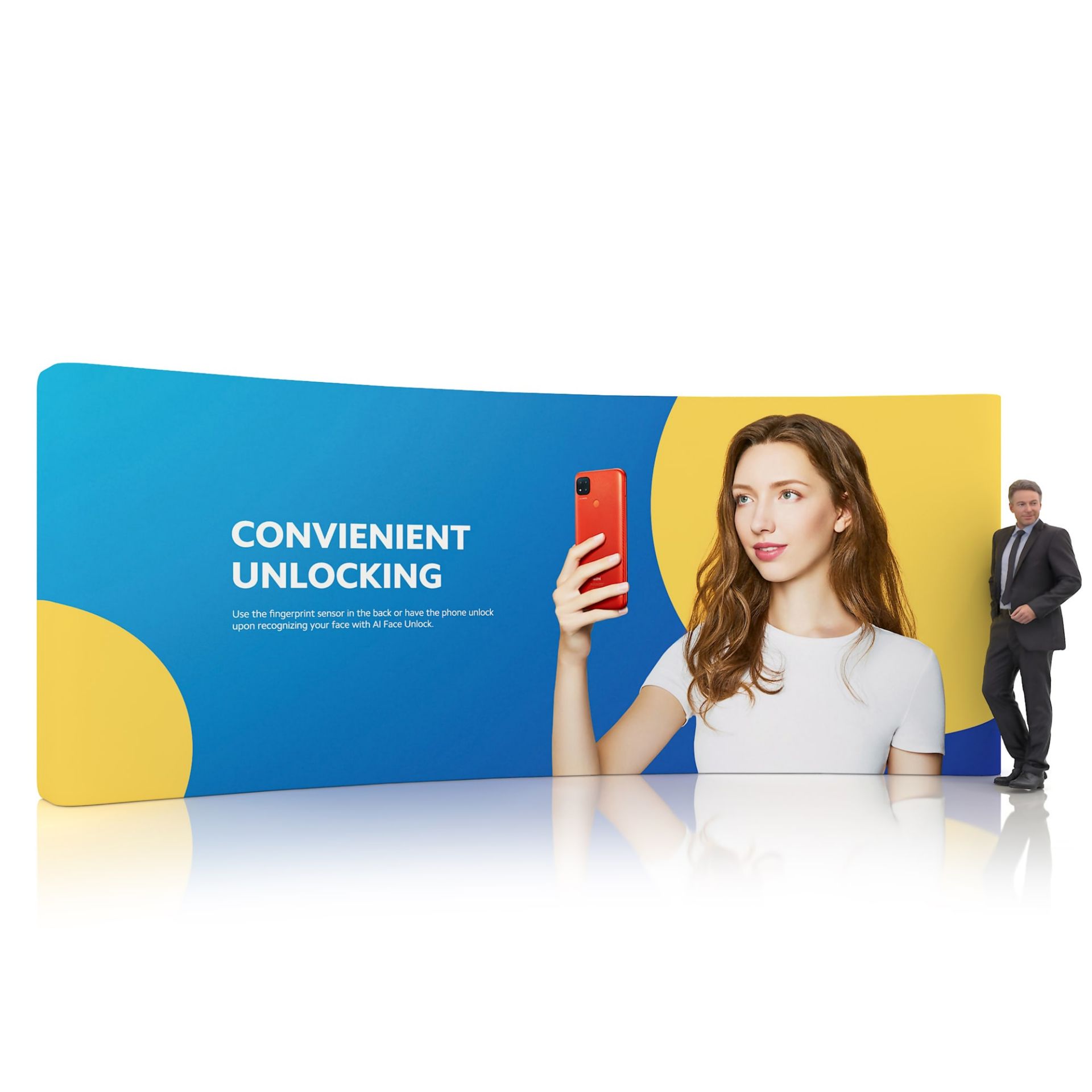 Get your branding seen at your next event, with our new display wall. The lightweight and strong aluminum frames are powerfully-built to sustain the fabric's stretch over long periods of time. The aluminum tube has a snap-lock function that can be easily assembled without tools. Made of Eco-friendly materials and reusable structure. Supporting customization via full surface sublimation printing. Can also be printed on both sides. Use our printed fabric wall banner as a background for stages, events, photobooths, press conferences, award ceremonies and more. Product accessories: Aluminum Frame*1set、Carry bag*1pc