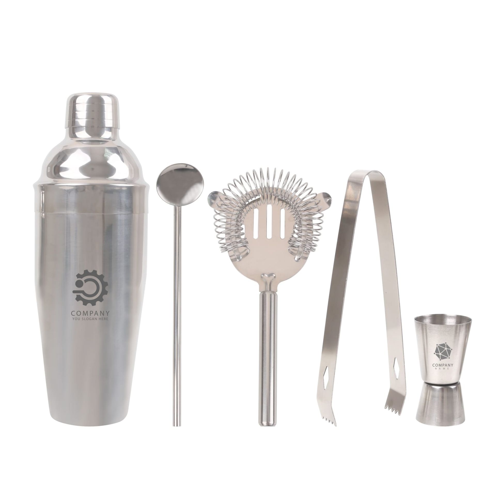 Never be caught short of cocktail tools again, with our complete cocktail tools set. Featuring a variety of tools, that can be used in any cocktail making situation. Set Includes cocktail shaker, cocktail strainer, double jigger(15/30ml), ice tongs and cocktail spoon. All made from quality 304 stainless steel material, which is durable and easy to clean. With laser engraving print to highlight your design. Available in two styles, 550ml shaker tools set or 750ml shaker tools sets. Perfect for bars, hotels, club members gifts or home use.