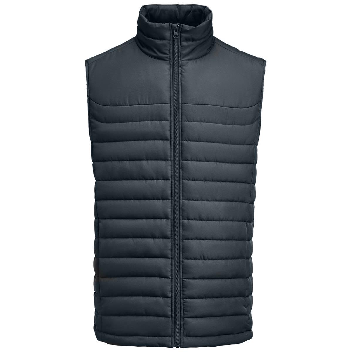 The Arches Men’s padded vest is made from recycled polyester, a PFAS-free water-repellent finish, and is designed to offer unparalleled comfort, functionality, and retain warmth. It features seam-hidden zipped pockets and an adjustable hem with an elastic drawcord. It also features an inside zipped pocket to secure essentials and a chin protector for enhanced comfort. Specifications * 100% recycled polyester outer shell (82gm/2) * 100% recycled polyester inner lining (37gm/2) * 95% recycled polyester / 5% Bluesign polyester padding (160 gm/2) * Full-length front zipper * Adjustable drawcord in hem * Inside zipped pocket for security * Chin protector * JH135_Size Chart.pdf