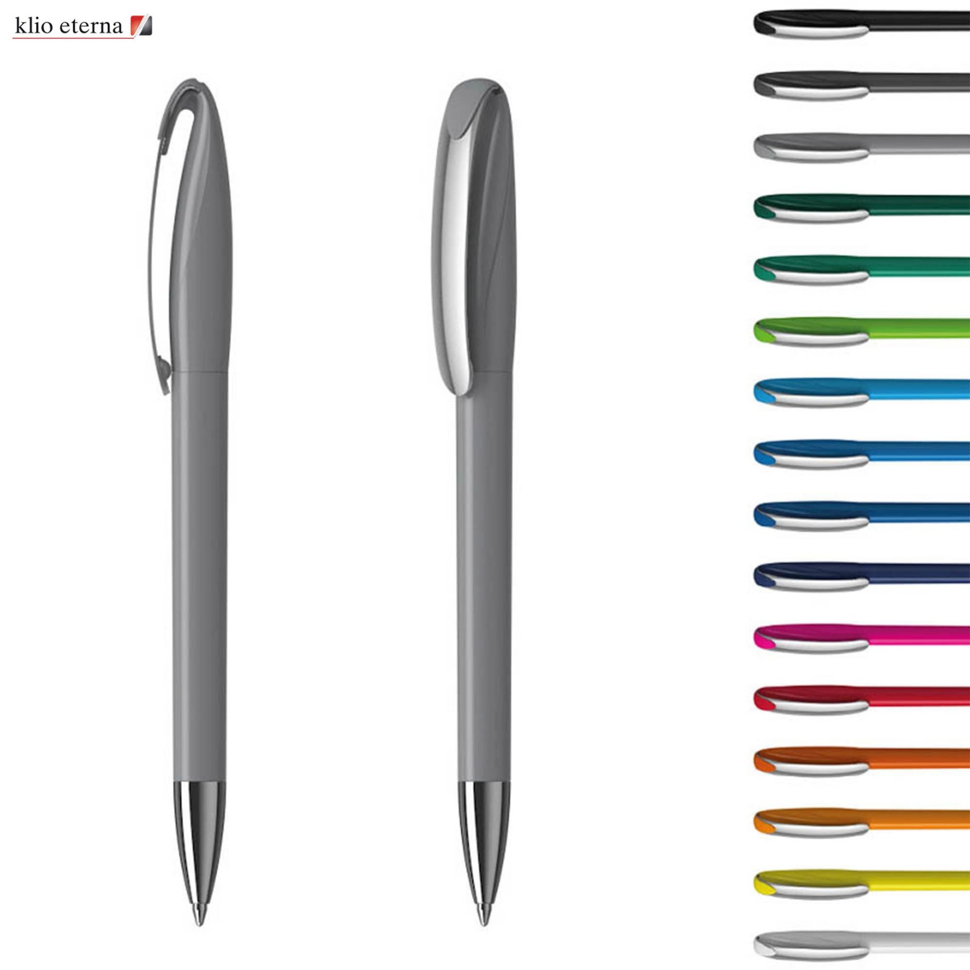 Klio the iconic European brand since 1900 now available worldwide. (Klio Model: 41180) Twist-action pen features a sleek solid high-gloss plastic design with a shiny nickel-plated brass metal tip and clip offering a spacious printing area. Equipped with a high-quality silktech German ink refill certified to ISO 12757-2 standards with a 3-year shelf life and boasting an impressive 3000 meters of writing distance three times longer than standard pens. Crafted with a tungsten carbide ball for unparalleled writing quality. Designed and manufactured in Germany exclusively offered through Dex Collection in Australia and New Zealand. Custom colour options available for orders exceeding 5000 units. Minimum order quantity: 500 units per colour.