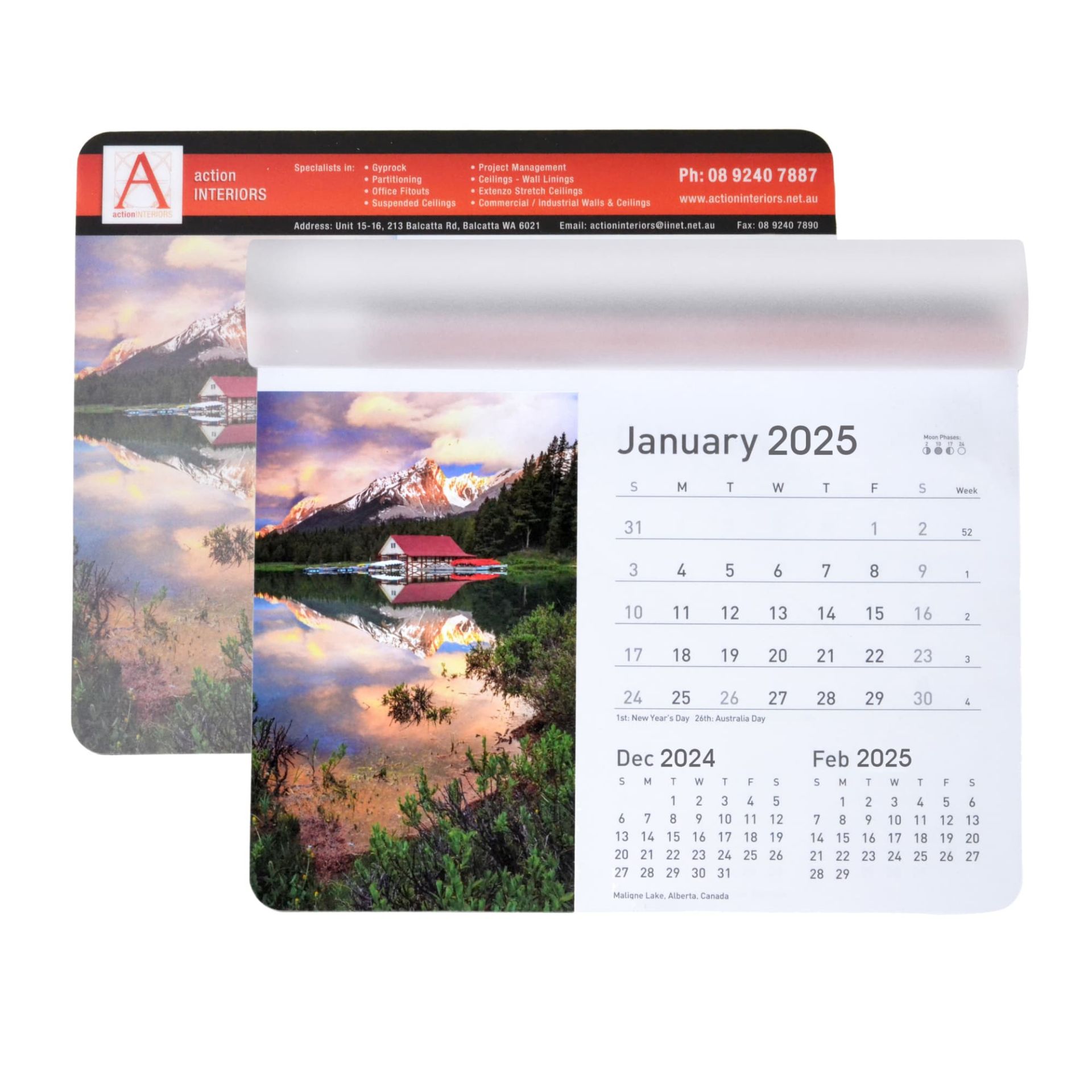 Our calendar mouse mat is completely customizable in every month. Perfect for adding a unique touch to your office. We're ready to print your company logo or any other high definition image on each of the twelve pages. PVC lamination protection allows each month to be easily peeled off while still letting the mat have great traction. Have a different full color image every month and keep your company logo on the top.