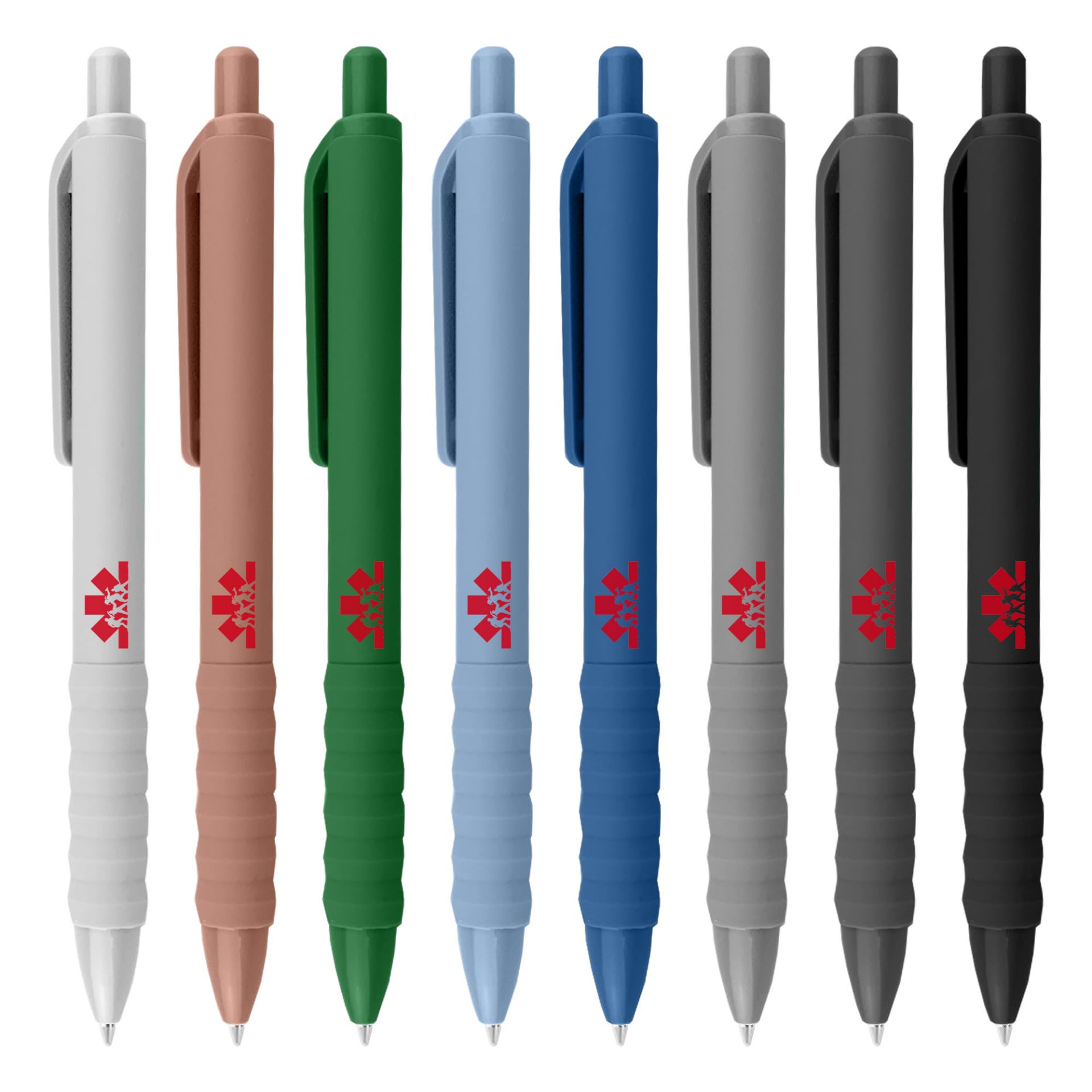 Premium quality click action plastic pen with solid matt finishing barrel and shiny glossy clip and tip. Super comfortable matching coloured rubberized soft-touch grip. It has a high quality Cross-Type German manufactured black ink refill 1200 meters writing distance tungsten carbide ball provides you with quality writing. Comes standard with black ink but blue ink is available on request at additional costs.