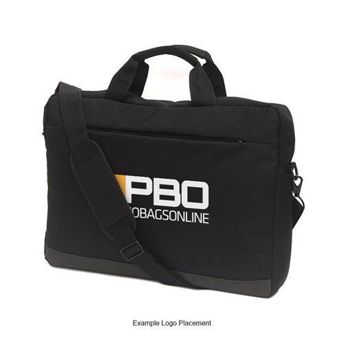 300 D two tone Polyester Large zippered main compartment Padded laptop pocket Strap with velcro to secure laptop Protective padding throughout Front pocket with phone and pen holders. Trolley handle attachment