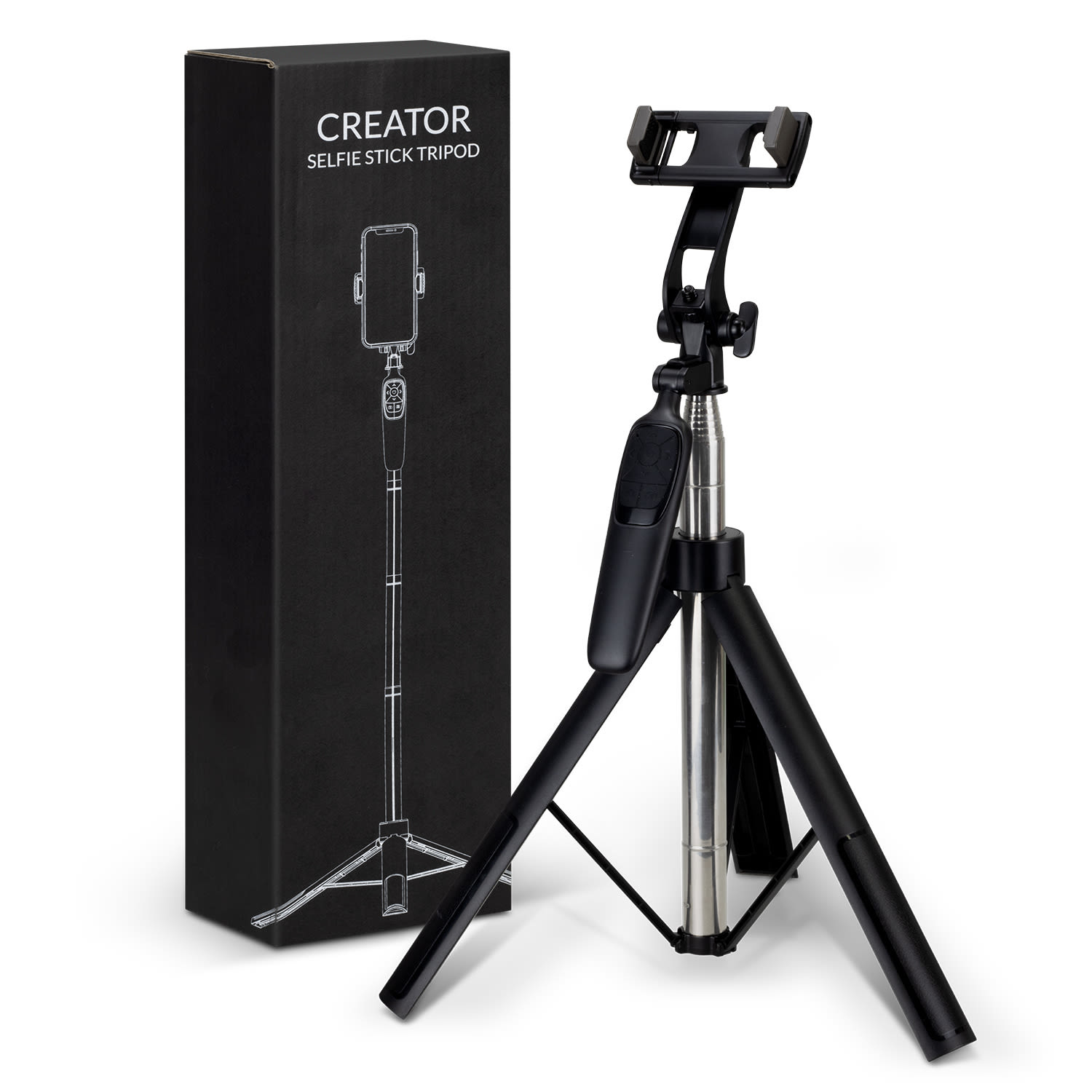 Versatile selfie stick and tripod that can rotate 360 degrees and serves as an all-in-one solution for photography needs. It has a compact design but can extend up to 150cm in height, making it perfect for capturing those hard-to-reach shots. The universal cradle will securely hold most smartphones, action cameras, and compact cameras. A rechargeable wireless remote makes it easy to take pictures or record videos without touching the device and a convenient EVA carry case makes it easy to take this photography accessory anywhere. The Creator Selfie Stick Tripod is presented in a printed black gift box. Features: * 2-in-1 selfie stick and tripod with 360 degree rotation * Compact design that extends to 150cm in height * Universal cradle to hold most smartphones, action and compact cameras * Includes a rechargable wireless remote * Convenient EVA carry case for storage and travel * Presentation: Printed black gift box