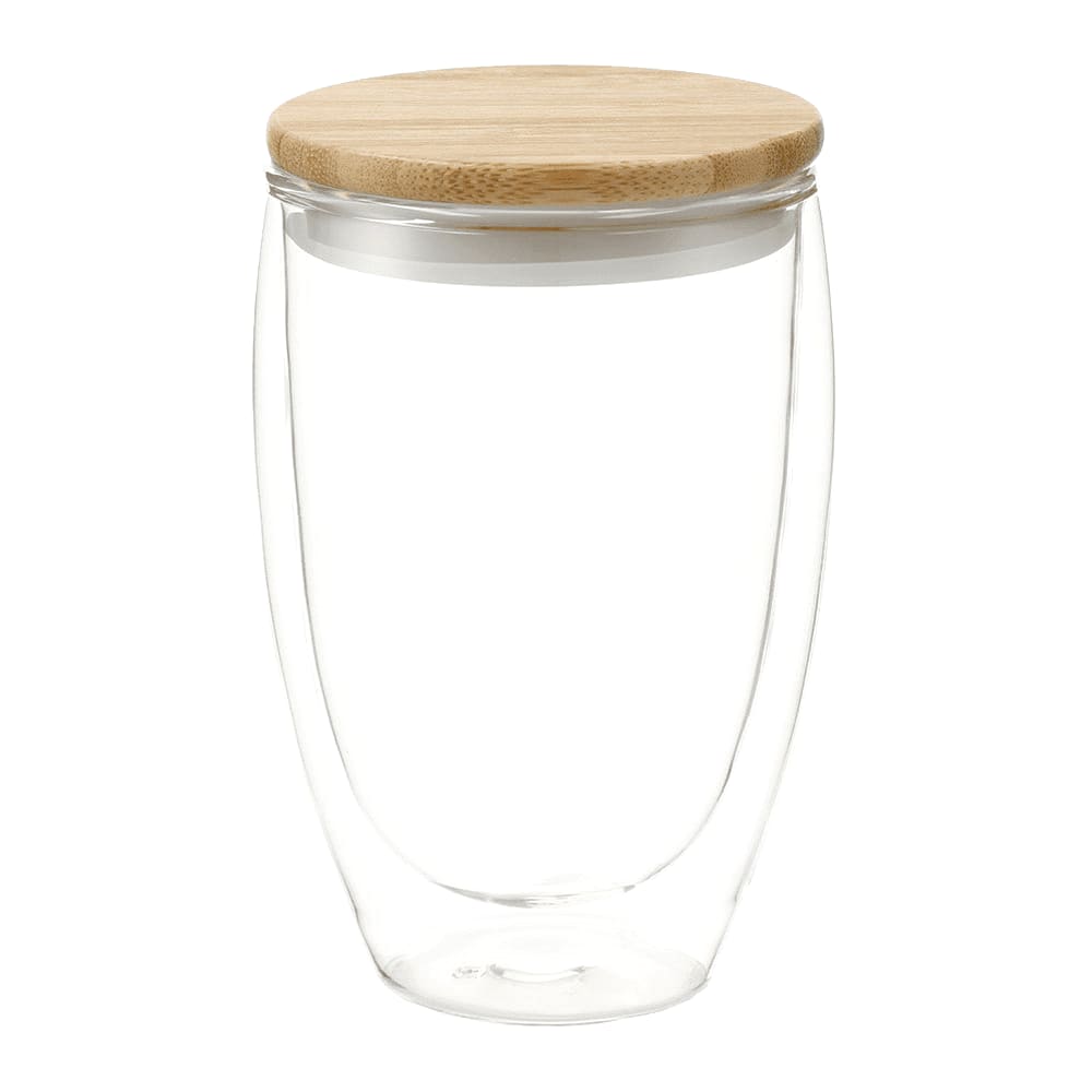 The Easton glass cup with bamboo lid features double-wall glass construction that lets you enjoy your favourite beverages without condensation forming on the outside of the cup. Recommended hand wash only. Keep bamboo lid dry when not in use. This cup is not dishwasher or microwave-safe. 355ml capacity.