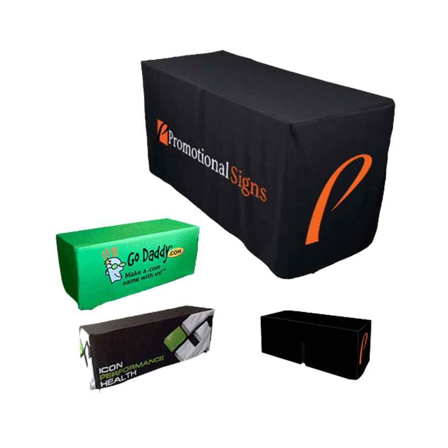Create a custom tradeshow display with our promotional Fitted Table Cloth with Zipper Back! Our new table cloth design with Zipper sewn in the back, ensures easy access and hides the storage conveniently. Our dye sublimated table covers are easy to maintain and machine-washable, can be reused over and over again. It's ideal for promo events and tradeshows to add an extra visual element to your display.?