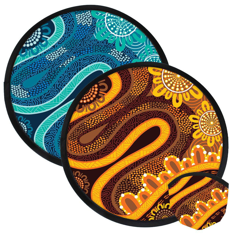 These unique Healing Journey artwork frisbees are a great giveaway gift for kids and even adults!. With a matching fold down pouch and lightweight construction are great for throwing out at events, concerts and other functions. Because this item is great for games, the beach and is highly durable it makes a brilliant gift that can also be personalised on special request.