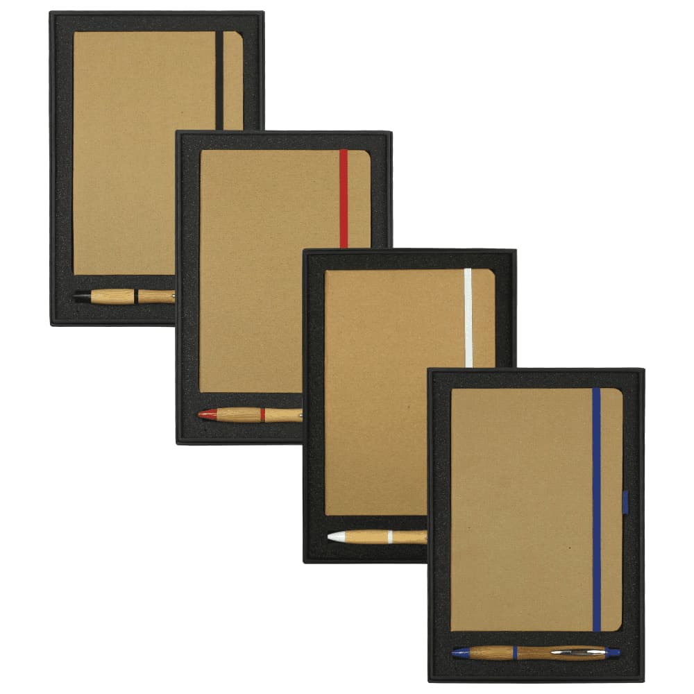 The perfect eco-friendly journal book gift set, including the Eco Colour Bound Journal and the Nash Bamboo Ballpoint Pen.