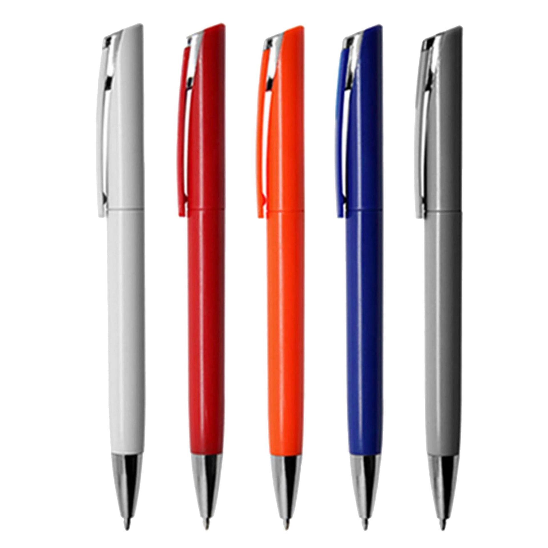 A quality plastic pen designed by European designer twist action with silver chromed tip and clip joint coloured solid plastic barrel high quality German manufactured black ink refill 1800 meters writing distance tungsten carbide ball provides you with quality writing.