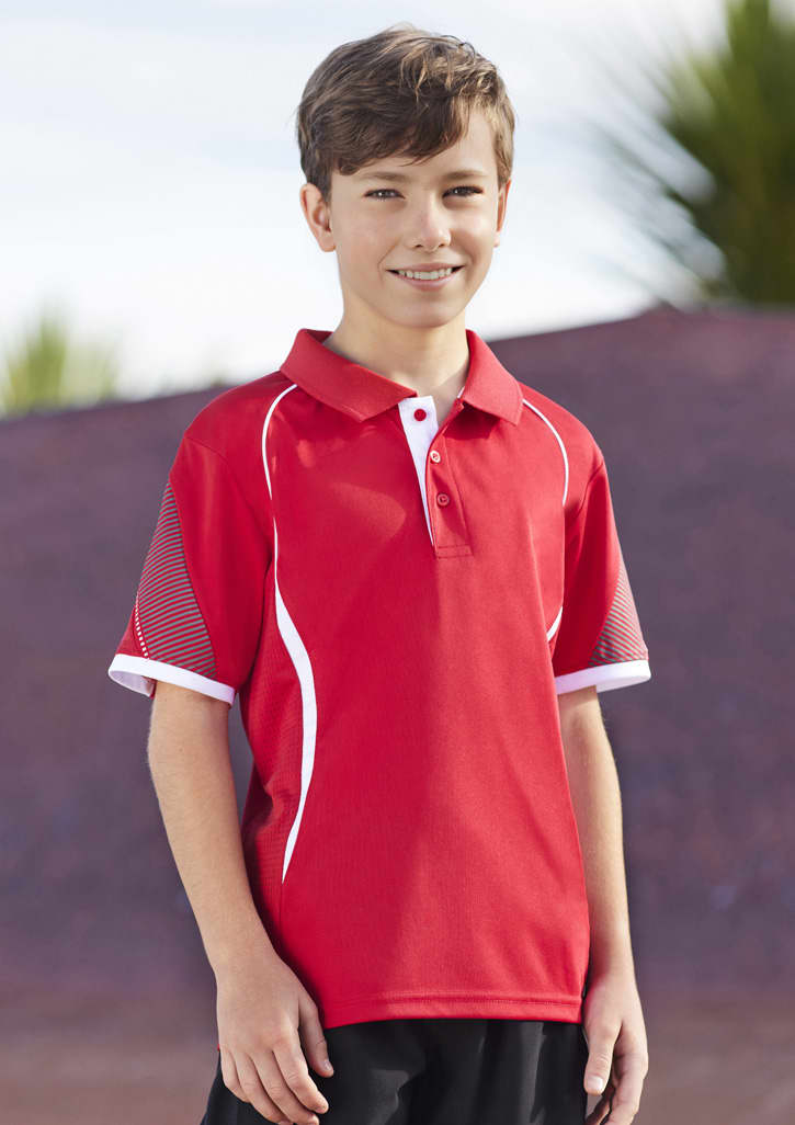 Features: Grid mesh underarm panels for breathability Unique sleeve print feature Contrast panels and piping Knitted collar with contrast placket Fabric: 100% BIZ COOL™ Polyester Sports Interlock 155 GSM UPF 50+ Sizes: 4 - 16