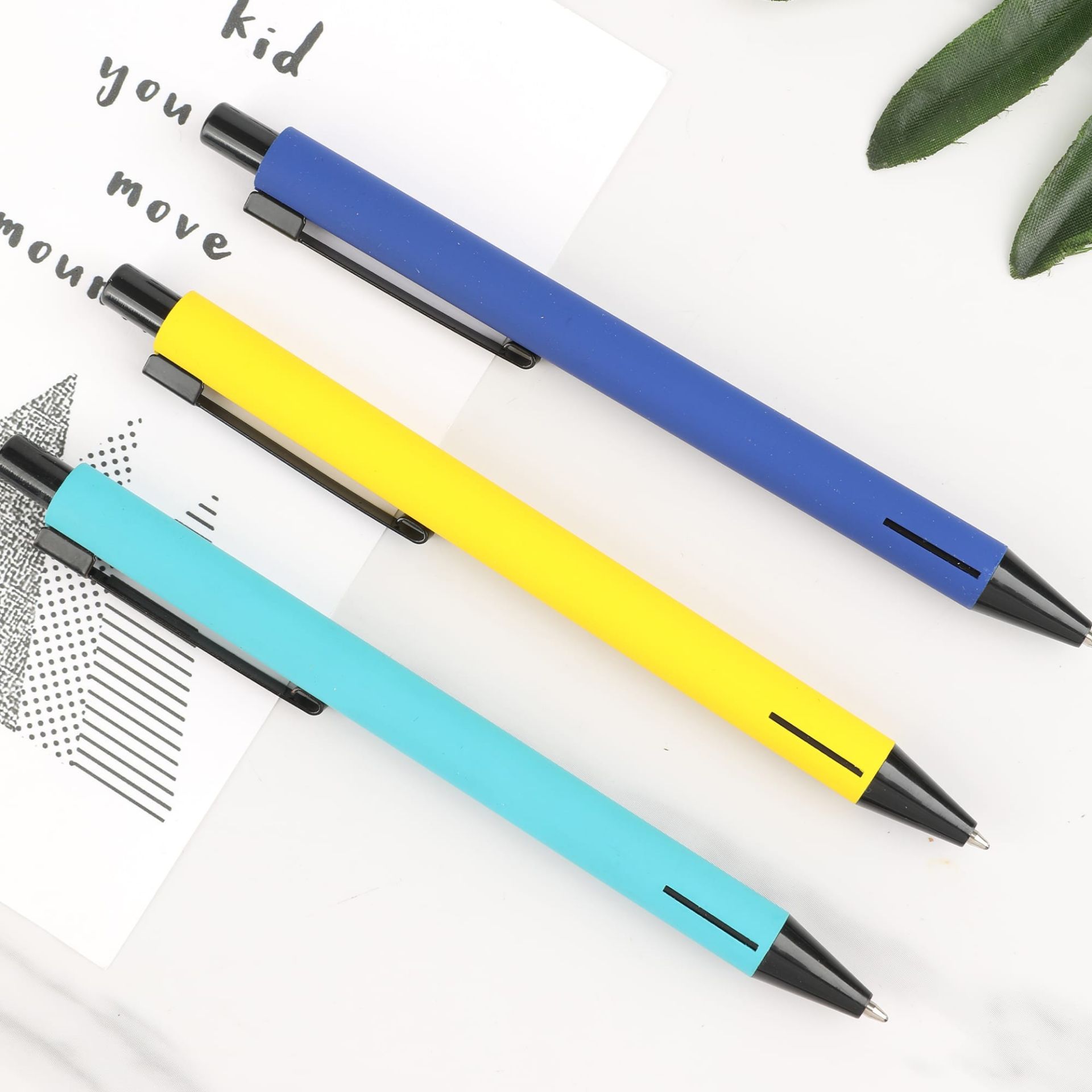 Popular smart and concise design with soft-touch rubberized aluminium metal pen a selection of 9 colours black plastic tip push button and metal clip click action with cross-type German manufactured black ink refill 1200 meters writing distance tungsten carbide ball provides you with quality writing.