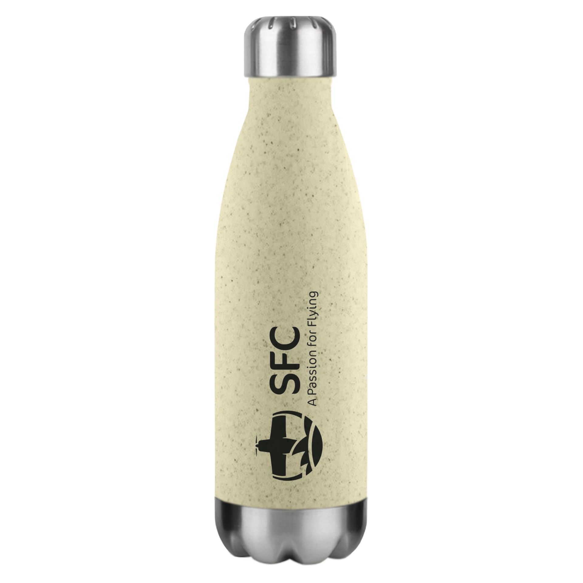 Trendy design 700ml BPA free wheat straw fibre single walled drink bottle. Manufactured from a 50/50 blend of natural wheat straw fibre and polypropylene - may retain some odour which will fade over time. Handwashing is recommended.