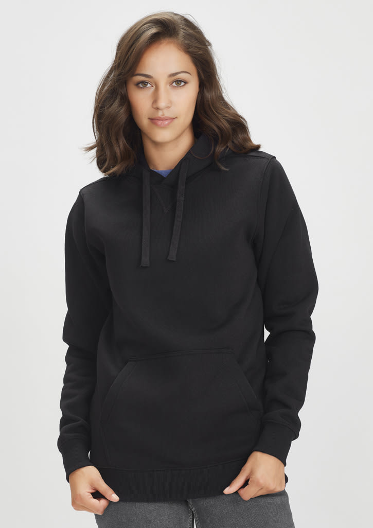 Features: Traditional front kangaroo pocket Adults style features hood with wider ‘shoelace’ drawstring No drawstring on Kids – keeping kids safe Knitted ribbed band on hem and cuff Fabric: 55% Cotton Fleece / 45% Polyester, 320gsm Sizes: XS - 2XL