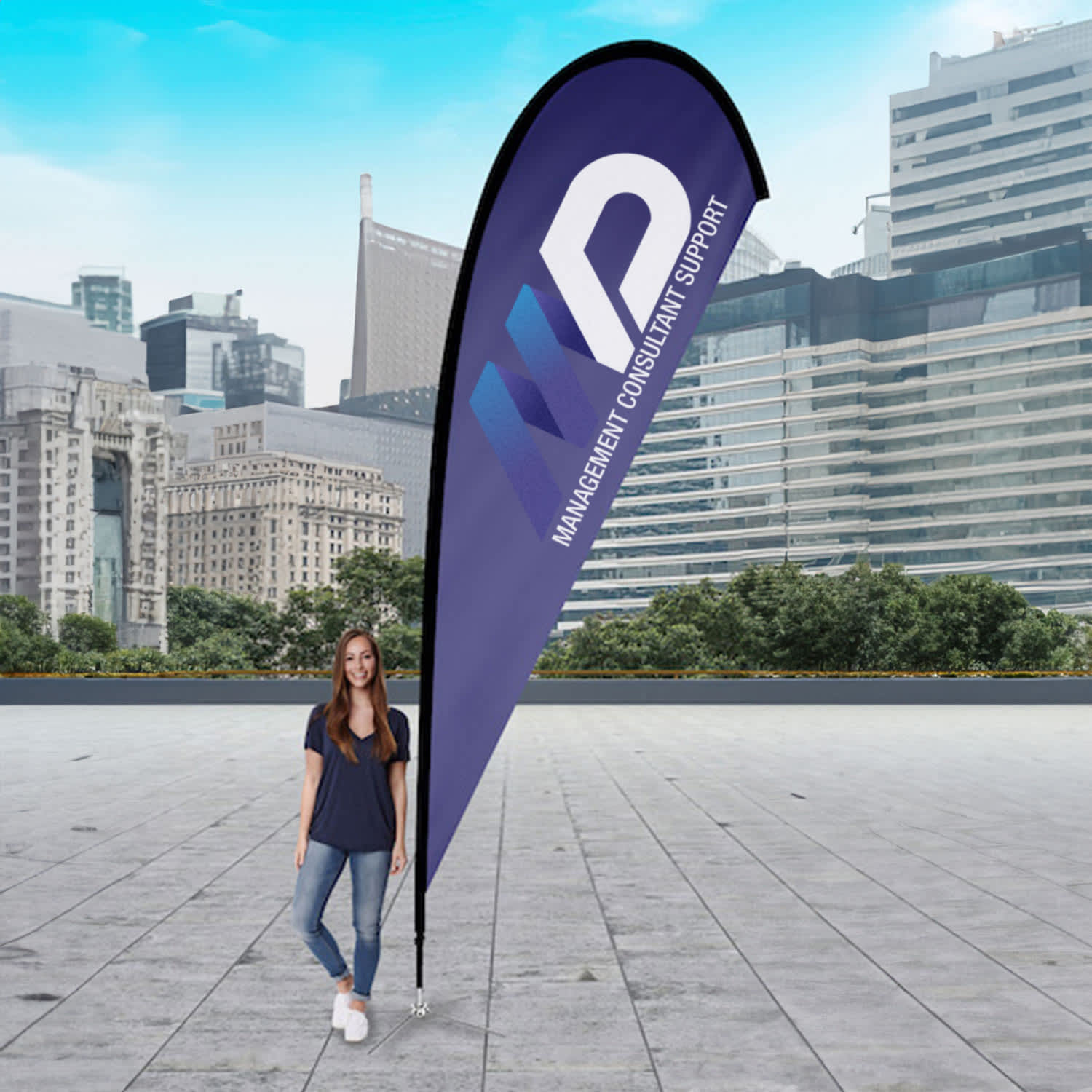 Draw attention to your event or business with an eye-catching tear drop flag. The kit includes a high-quality knitted polyester tear drop flag that measures 391cm x 82cm, and a carry bag. Depending on your needs, you can choose from spike, cross, square, wheel, wall mounted or floor mounted bases. A water bag weight is also available as an additional accessory. This product is branded via sublimation print and has a lead time of 14 working days. Features: * Knitted polyester tear drop flag kit with spike base * 391cm x 82cm * Ideal for events and promotions * Alternate bases and accessories available for an additional cost * Lead time: 14 working days
