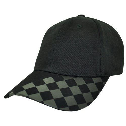 Structured 6-panel.PU peak - embossed checkers.