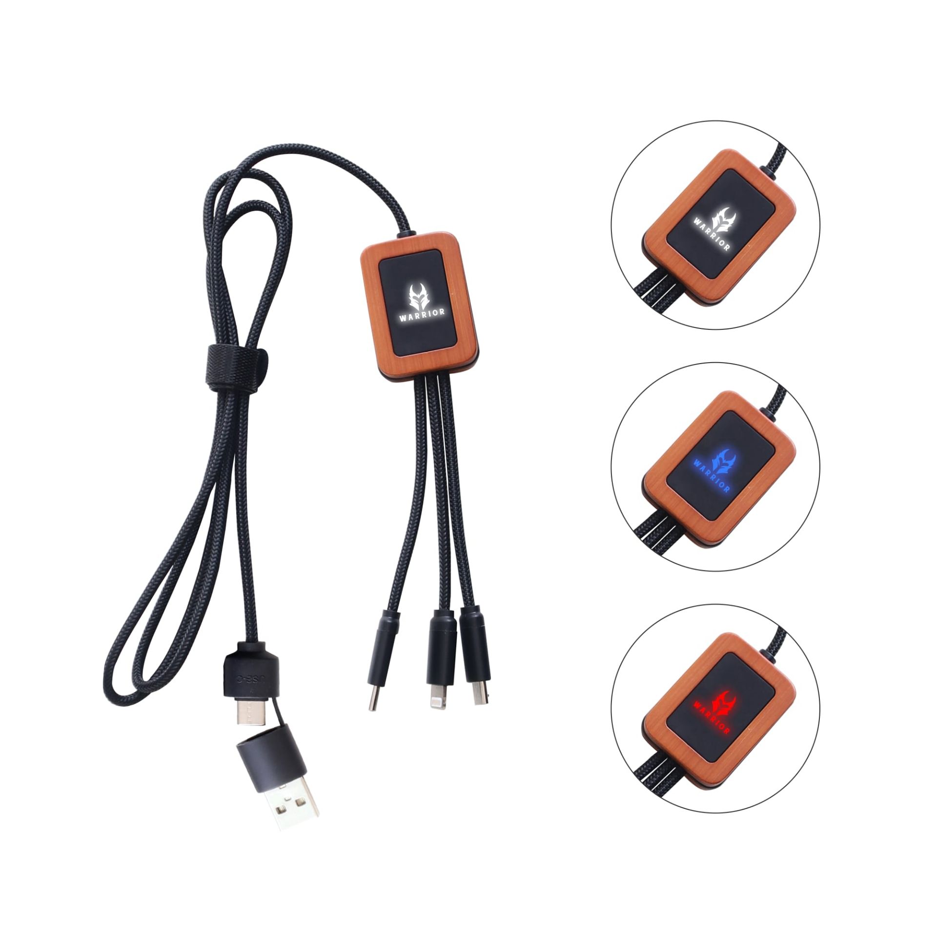 Get your branding seen while charging your devices, with our new charging cable range! This long light-up logo charging cable, made from rPET and bamboo material, comes with Type-C/USB input connectors and Lightning, Micro-USB and Type-C output connectors. Up to three devices can be charged simultaneously. You will never have to search through a jumble of cables again. Available in round and square shapes. You can engrave the disc with your logo, featuring back illumination to highlight your design. This charging cable would surely become the perfect high tech giveaway.