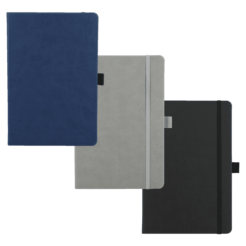 | Features | Recycled polyurethane cover, Document pocket on the inside of the back cover, 80 recycled cream lined pages, Colour matching ribbon page marker, elastic band and pen loop, A5 |