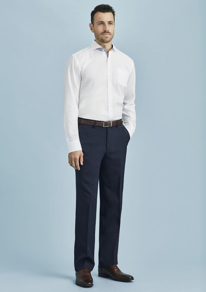 Features: Flat front, straight through the leg. Waistband with stretch fusing. Internal security pocket on right front pocket, and two rear pockets. Fabric: 92% Polyester 8% Bamboo Charcoal Versatile and durable suiting fabric. Breathable fabric perfect for warmer climates keeping you cool and dry. Mechanical stretch for extra comfort and anti-bacterial finish to eliminate odour. Sizes: 107S - 127S (AUS/NZ) 42S - 50S (CA/US) Cares: Trousers - Warm or cold machine wash. Wash with similar colours. Do not bleach, soak or tumble dry. Line dry in shade. Warm iron. Recommend dry clean 30°C.