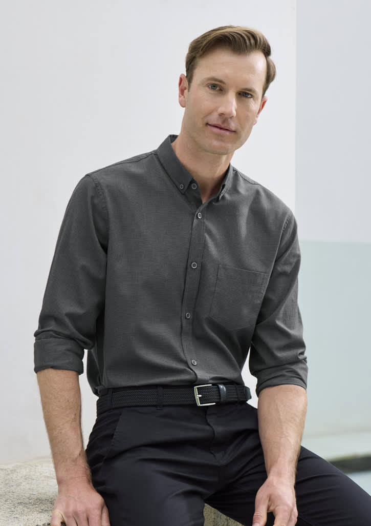 Features: Garment washed for softer hand feel and relaxed look Button down collar Dress placket and adjustable cuffs Centre back box pleat for ease of movement Curved hem with inserts, can be worn tucked or untucked Left front pocket Fabric: 60% Cotton, 40% Recycled Polyester; Yarn-dyed Micro-check; 120 GSM; UPF Rating 15+ Sizes: XS - 5XL