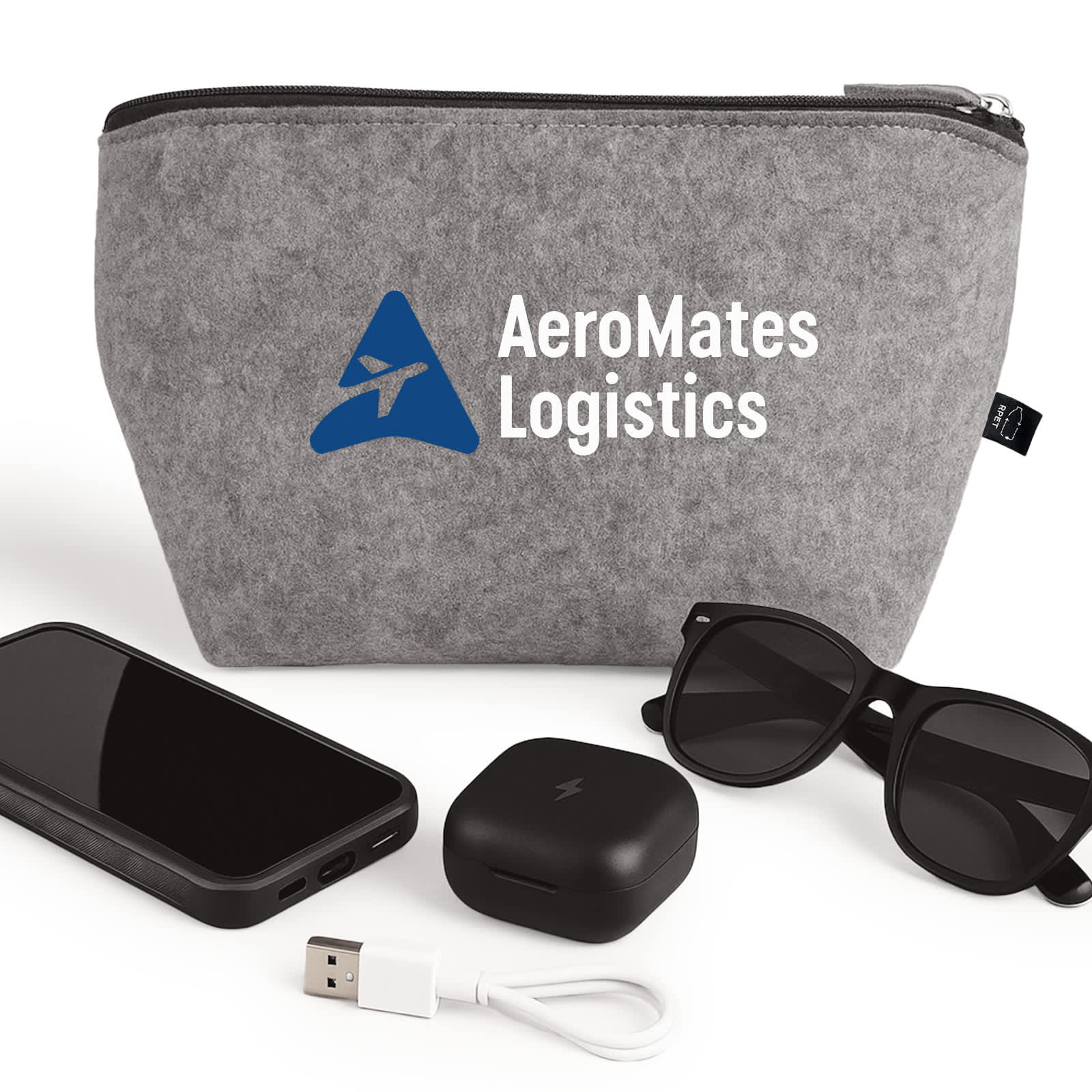The Montana RPET Felt Pouch is a versatile zippered pouch designed to store and organise your everyday essentials. Made from 2mm RPET felt – a material derived from recycled PET water bottles – it offers a modern, eco-aware alternative to traditional pouches. With a spacious interior, it’s perfect for cosmetics, stationery, travel accessories, cables, or even first aid items. Finished in grey with a black zipper and RPET label tag for a clean, understated look.