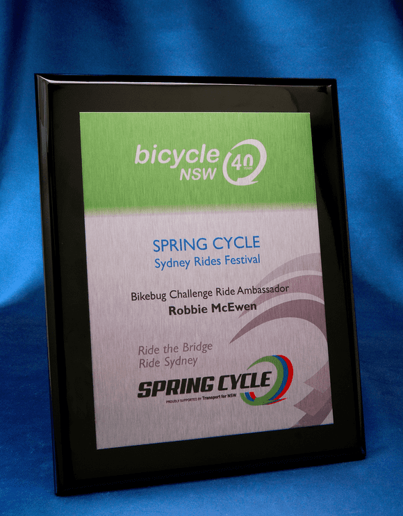 Piano Finish Black Plaque with Brushed Silver Printed Metal Plate