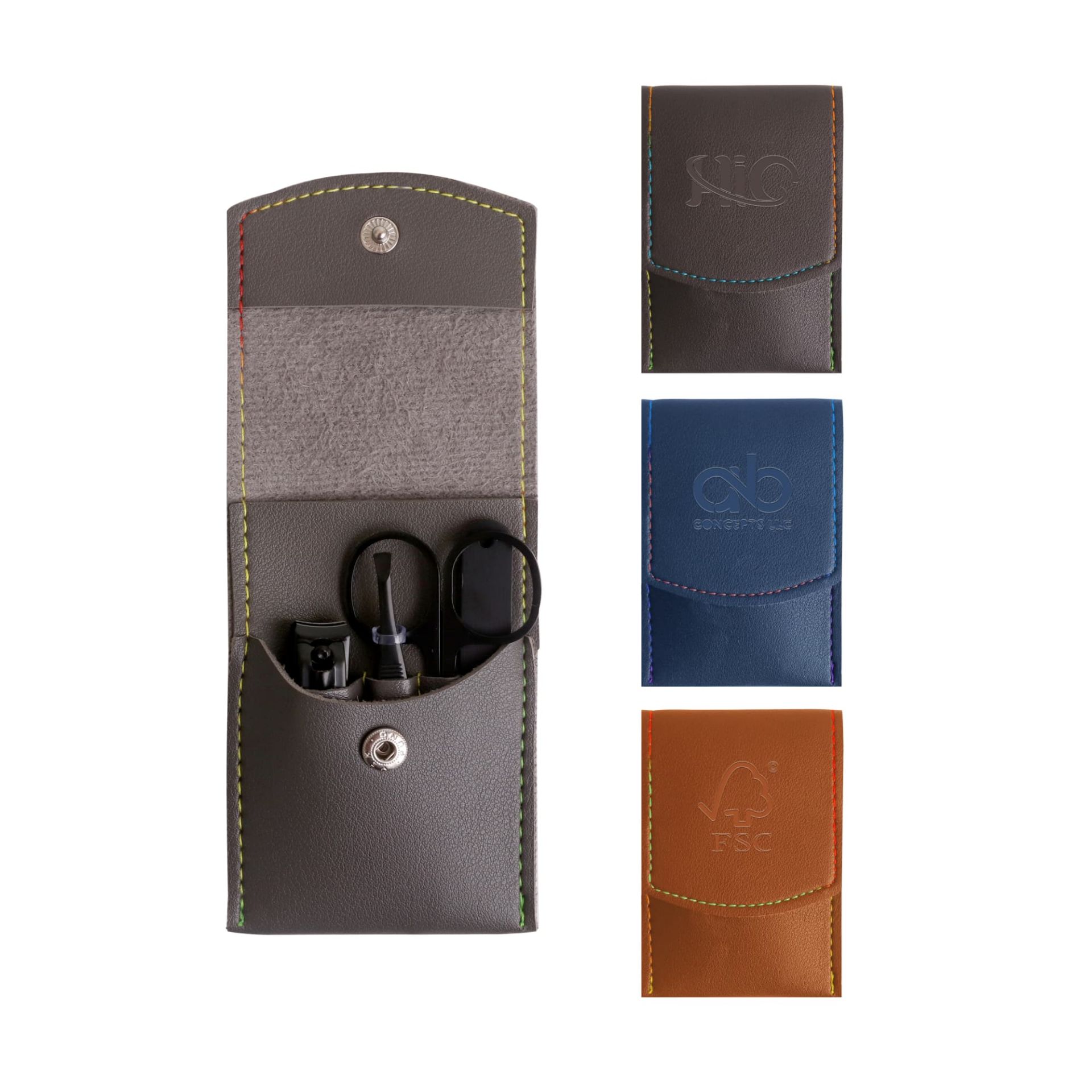 Get your brand seen with our Portable Manicure Set. It contains 4 tools for hand care and facial care. Made of PU leather case and stainless steel tools. With debossing to showcase your design. Customized logos can enhance the effect of brand promotion! Perfect for travel and everyday life.