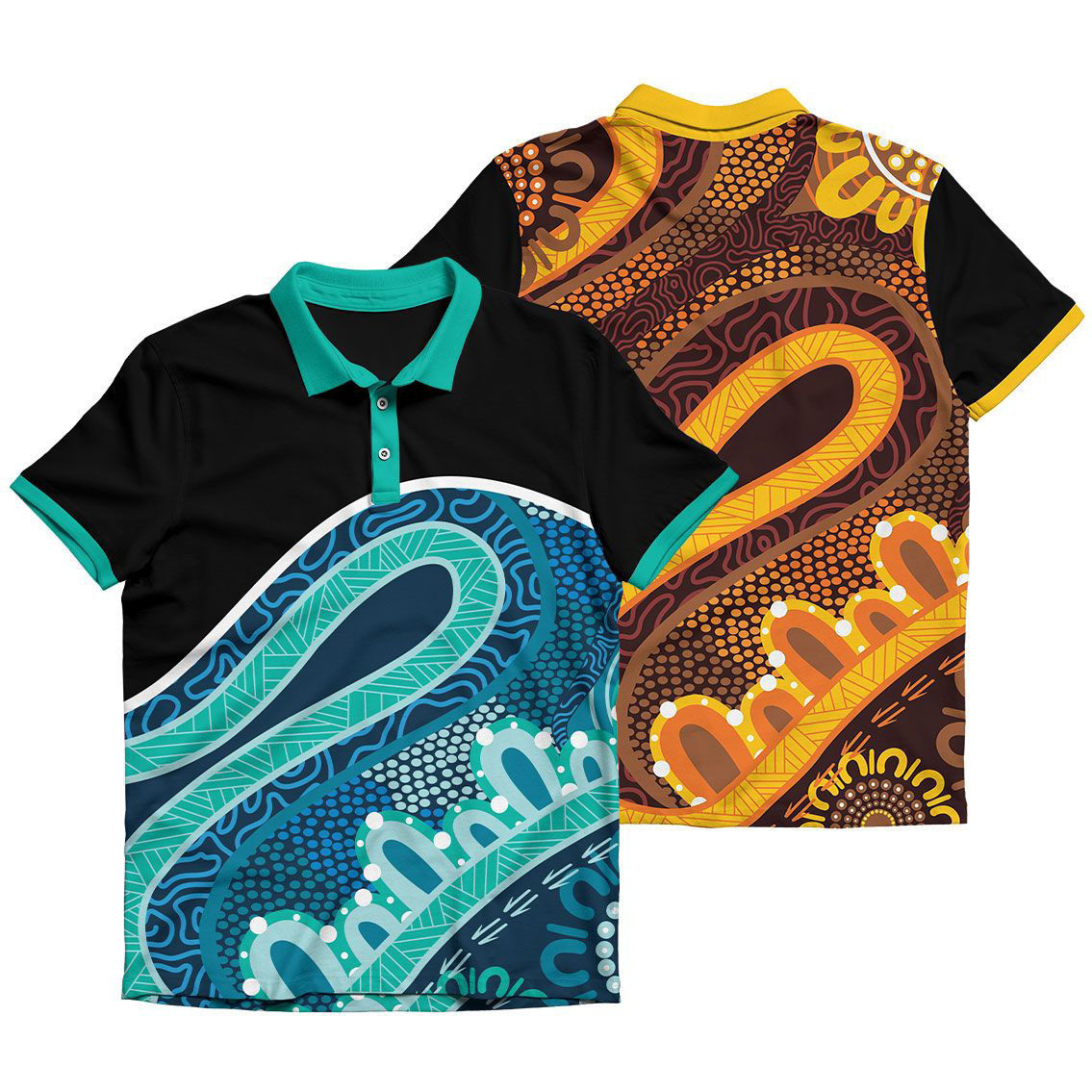 Co branding Available! on this premium, breathable polo shirt that features our exclusive "Healing Journey" design available in Coastal Blue or Brown Earth colour options.