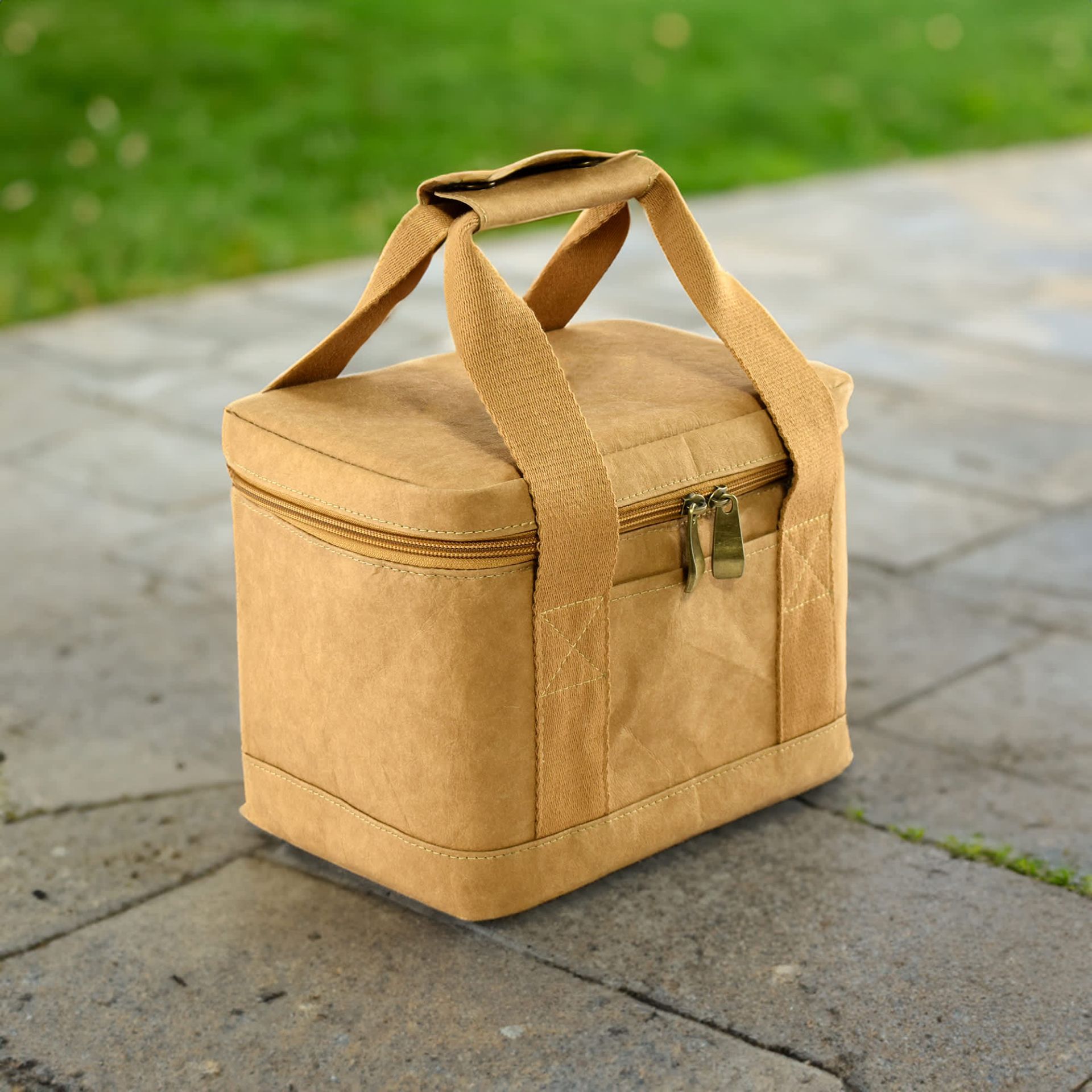 Robinson Kraft Paper Lunch Cooler Bag is designed for convenient and efficient use. The use of German 0.55mm washable kraft paper gives it a unique and modern eco-friendly look while the alumium and EPE foam insulation lining helps to maintain the temperature of your lunch items. The wide handle adds comfort to carrying and the front pocket provides extra storage for small items. With its compact size and insulated design this lunch cooler bag is a practical and reliable companion for your daily lunch needs whether it's for work school or on-the-go outings.