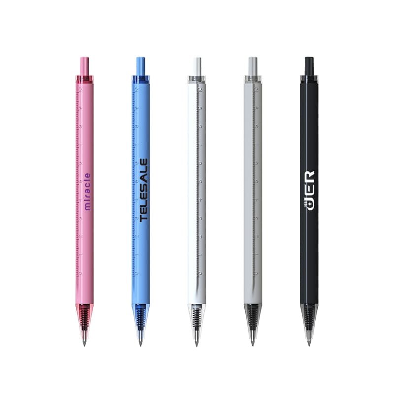 Create your unique writing instruments, with our new Ruler Pen! These lightweight push button pens have a coloured barrel and can measure length. Complete with pad print to highlight your brand. Customized patterns or logos on pens can enhance the effect of brand promotions. Our ruler pen is suitable for the school or office, a perfect choice for your next event or gift.