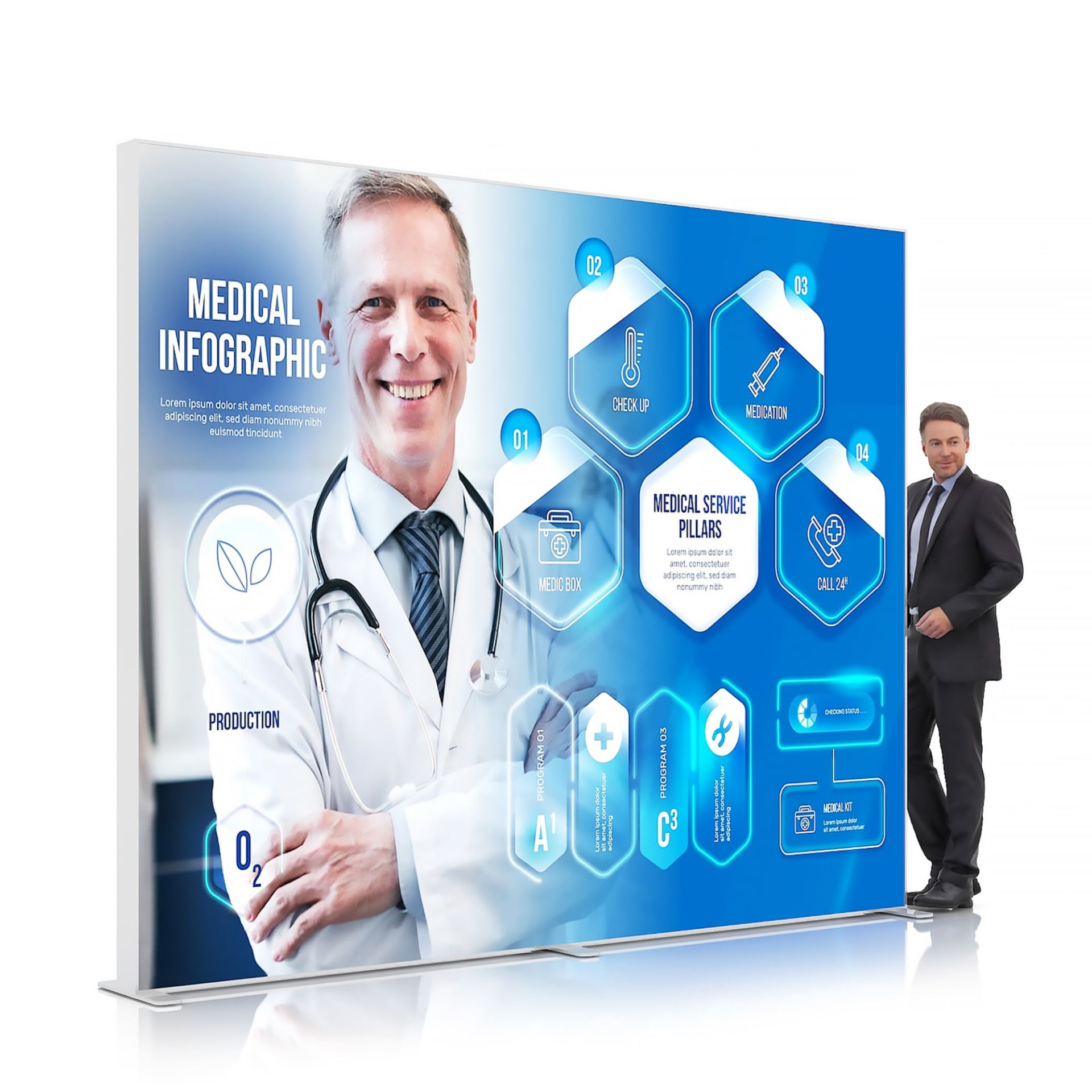 | Product Material | Frame: Aluminum alloy Banner: Silicon edge tension fabric LED light: Power Light 2W |