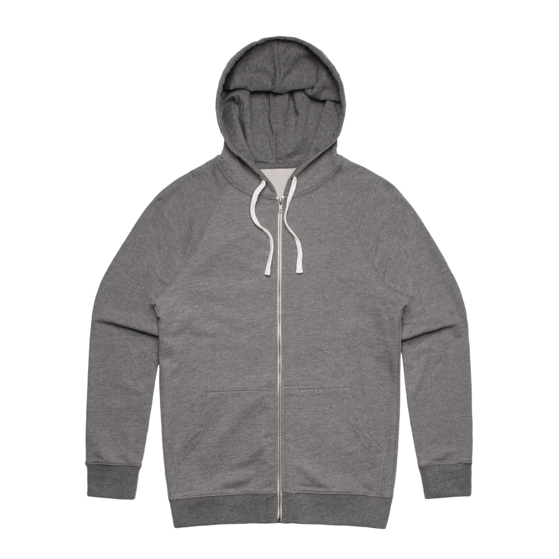 Slim fit Zip hood, raglan sleeves, kangaroo pocket Mid weight, 320 GSM 75% cotton 25% polyester (non-marles 100% cotton) anti-pill French Terry fleece Lined hood, white drawcord, black nickel YKK metal zip with white tape, sleeve cuff ribbing, preshrunk to minimise shrinkage