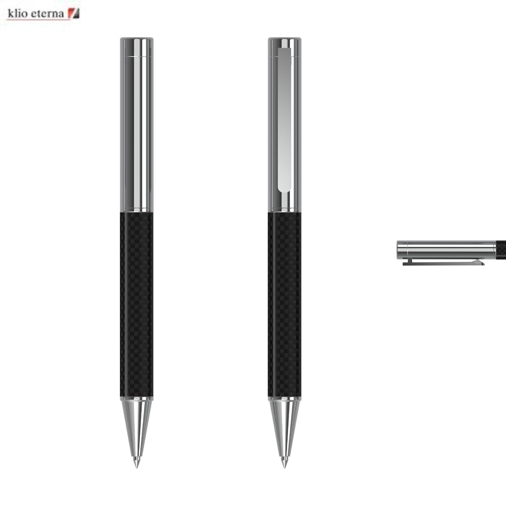 Klio the iconic European brand since 1900 now available worldwide. (Klio Model: 60300) The Unique Pen a blend of premium materials meticulous craftsmanship and elegant design. This twist-action ballpoint pen features a carbon barrel for a sleek and sophisticated look. The brass chrome-plated tip and upper barrel along with the steel chrome-plated clip add a touch of luxury. Paired with a high-quality SilkTech German-made black ink refill meeting ISO 12757-2 standards with a shelf life of 3 years it ensures a smooth and reliable writing experience. With a tungsten carbide ball providing precision it offers an impressive writing distance of 8000 meters surpassing China-made pens. Designed and manufactured in Germany exclusively available through the Dex Collection in Australia and New Zealand.