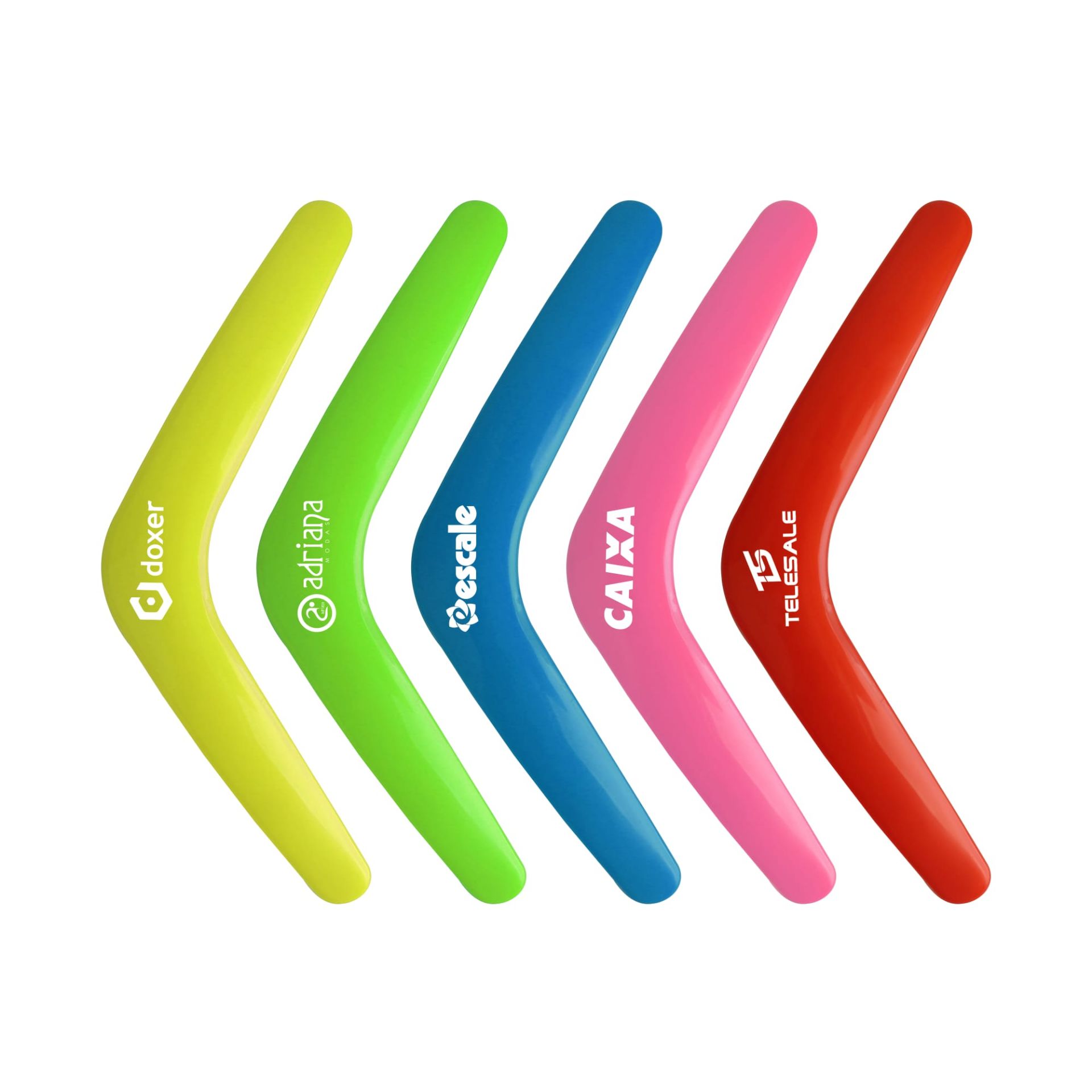 Throw it and it returns! Get your branding seen with our new V shaped boomerang toy. Made of sturdy lightweight PP, vibrantly coloured boomerangs add fun to any event. With screen print to highlight your design. Great for outdoor, sporting and school events.