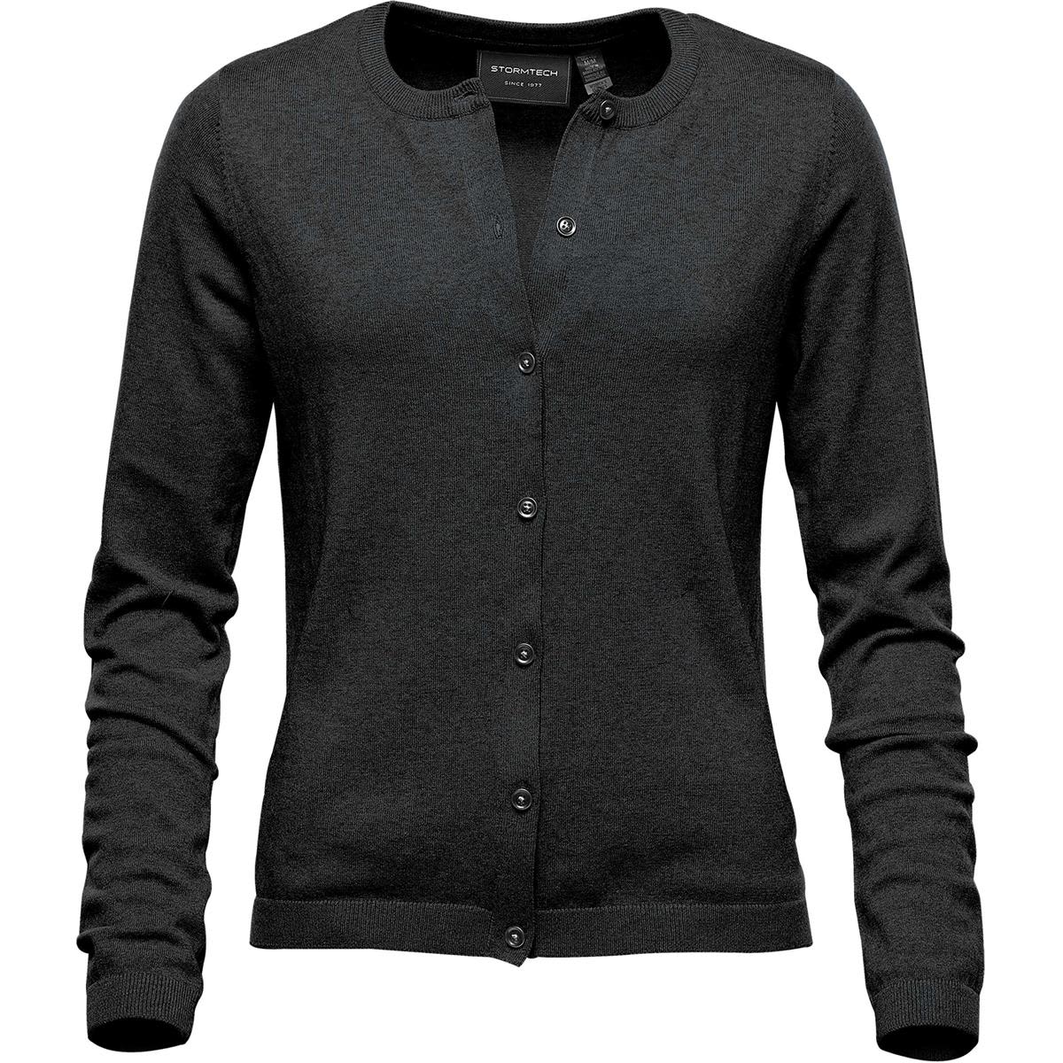 Your home away from home. A quality cardigan brings a sense of familiarity that reminds us of carefree days and home felt comforts. The Avondale Cardigan is an extension of contentment with its full front button closures for a more conservative look. The rib crew neck collar, cuff and hem finish off the snuggle factor in this classic piece. Specifications * Full Front Button Closures * 1x1 Rib Crew Neck Collar, Cuff and Hem * Fully Fashioned Armholes * 80% Cotton, 20% Nylon, 12 Gauge
