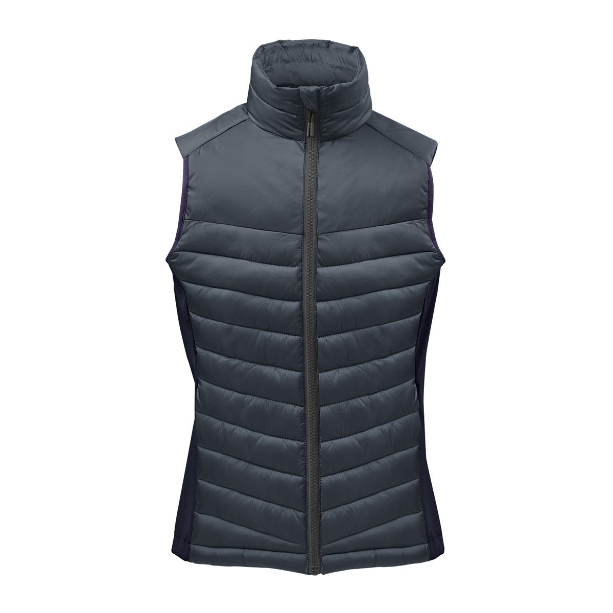 Lightweight thermal efficiency. The Montserrat Vest helps you warm up in damp and cold environments with a lightweight quilted body and stretch side panels. A PFC-Free durable water repellent finish on the main body helps repel water in damp conditions. Chin saver and adjustable hem with drawcord lets you adjust for maximum comfort. The Montserrat Thermal Vest is built with both regular and recycled polyester fabric inputs for a reduced environmental footprint. Specifications * Pure Earth by STORMTECH™ * STORMTECH Thermolex™ High Loft Synthetic Down * PFC-Free Durable Water Repellent Finish * High-Performance Windproof Outer Shell * Combination of Broken Fiberfill and Polyfill * Contrast Single Layer Stretch Side Panels * Adjustable Hem * Partial Elasticized Armhole Trim * Zippered Hand Pockets with Brushed Tricot * Internal Mesh Stash Pockets * Decoration Access * (Shell) 55% Recycled Polyester/ 45% Polyester, 1.15 oz/yd2 (USA) / 39gsm (CDN); (Shell-Secondary): 92% Recycled Polyester/ 8% Elastane bonded with 100% Recycled Polyester Polar Fleece, 8.11 oz/yd2 (USA) / 275gsm (CDN); (Lining) 55% Recycled Polyester/ 45% Polyester