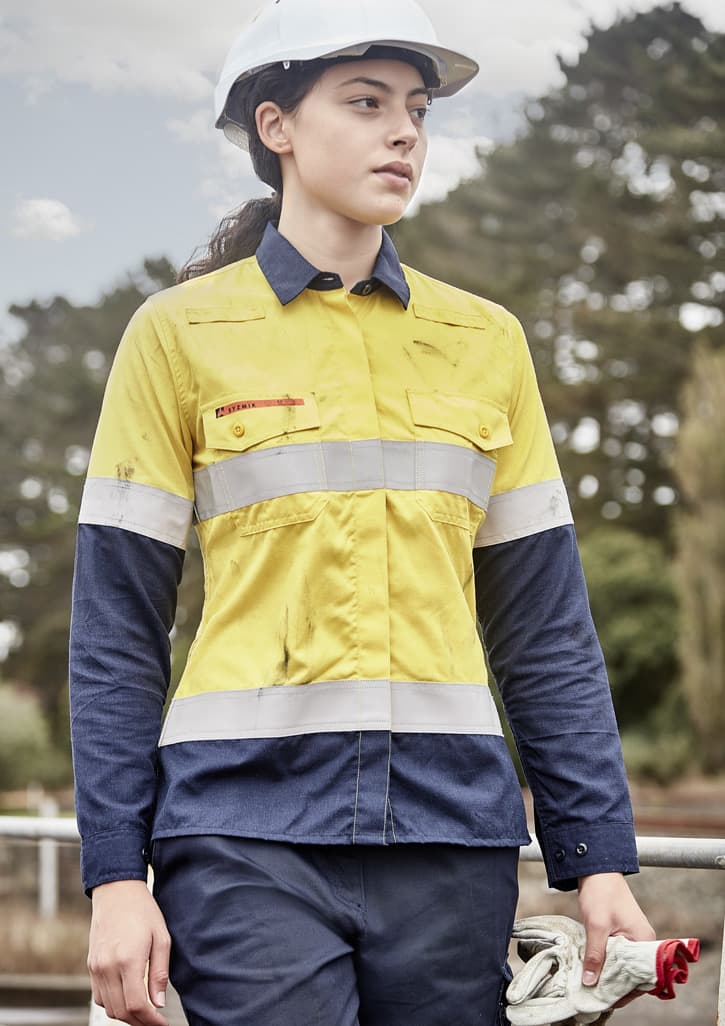 Features: Ultra lightweight 165 GSM fabric that is rated to PPE/HRC 2 Unmatched comfort and coolness with high level 10.3 cal protection Ripstop fabric construction for increased strength and durability Meets and exceeds all recent NENS, ISO and NFPA Design Guidelines Antistatic fabric Fabric has soft feel and excellent moisture wicking to further increase comfort All reflective tape, buttons, threads are FR rated Gusset sleeve closure for extra protection with FR rated buttons Concealed FR centre placket for extra protection 2 Chest pockets with FR button closures 2-Way radio and gas loops on the shoulder yoke Label that clearly shows FR rating of garment Fabric: Lenzing Viscose FR, Meta-aramid, Polyamide, Para-aramid, Antistatic Ripstop, 165 GSM Sizes: 8 - 24
