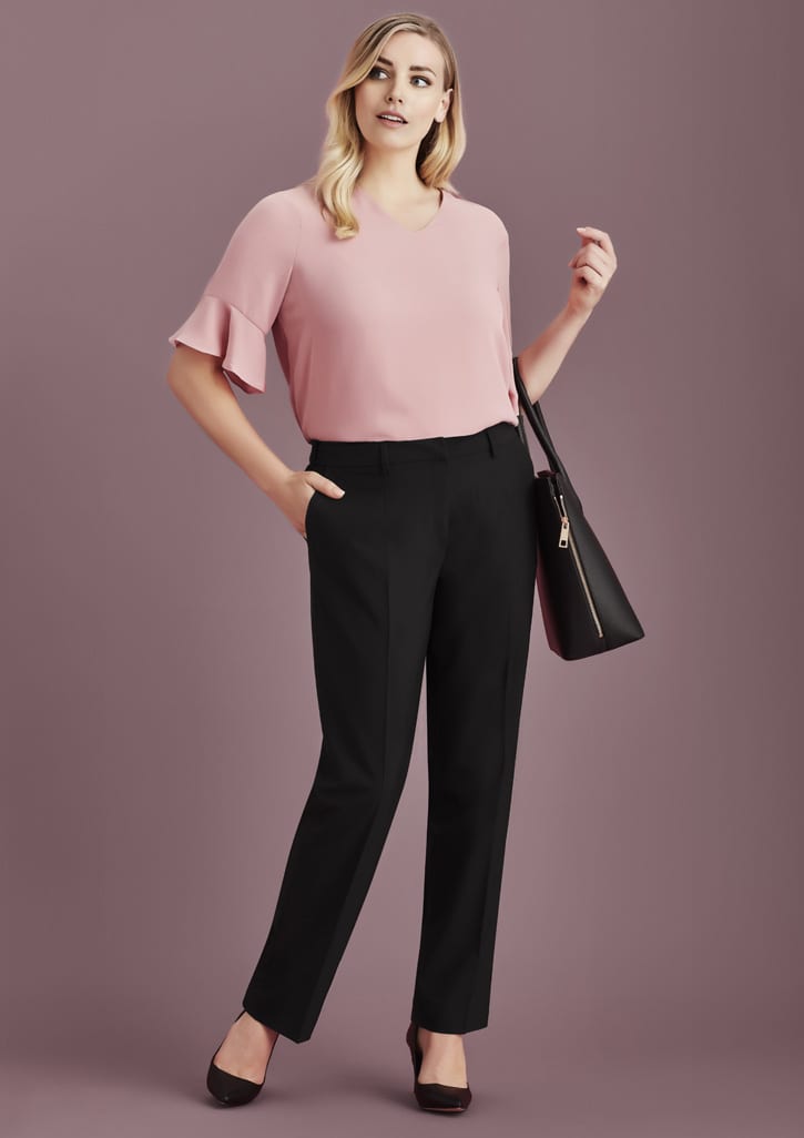 Features: Our best selling style. A must have for your working wardrobe. With hidden elastic waist, deep pockets and streamlined straight leg shape. Fabric: 79% Polyester 17% Viscose 4% Elastane. A lightweight easy care fabric that is soft, and durable. Contains stretch for comfort and Viscose for breathability. Suitable for both functional and corporate roles. Sizes: 8 - 30 (AUS/NZ)