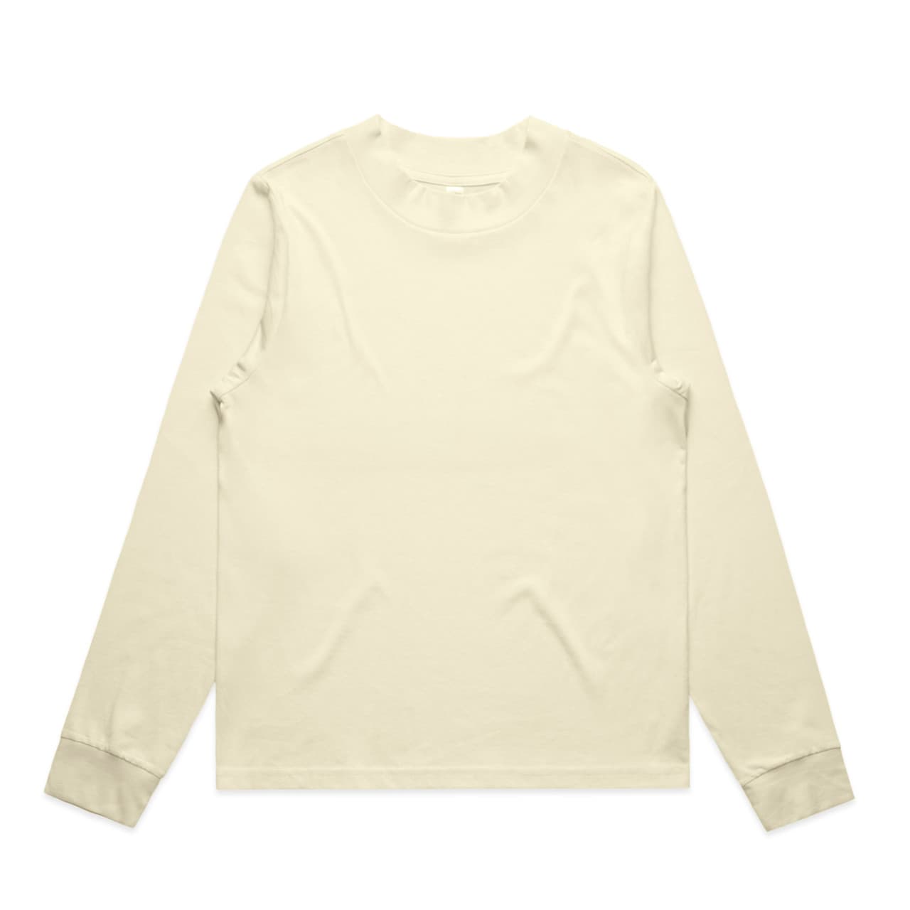 Shorter length body, long sleeves, rib cuffs, high rib neck, double needle hems, preshrunk to minimise shrinkage