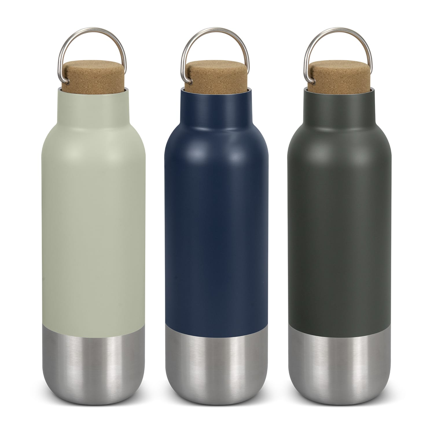 This eye-catching 650ml double wall vacuum drink bottle has been made from 91% recycled stainless steel and features a contrasting silver base with a trendy cork lid with carry handle. Wynn is available in three colours and boasts a stylish paint finish. Presented in a natural gift box, this bottle is the perfect blend of elegance and practicality. This product is not dishwasher safe, and handwashing is recommended. Features: * 650ml double wall vacuum bottle * Made from 91% recycled stainless steel with a stylish paint finish * Features a silver base and a screw on cork lid with carry handle * Presentation: Natural gift box